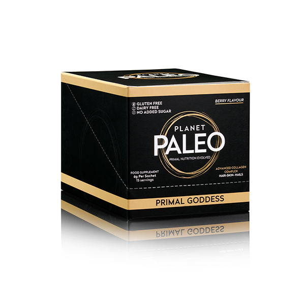 Planet Paleo Primal Goddess collagen powder is a carefully chosen blend of primal herbs, scientifically researched co-active nutrients and collagen peptides. It has been specially formulated to comprehensively support skin, hair and nail health.